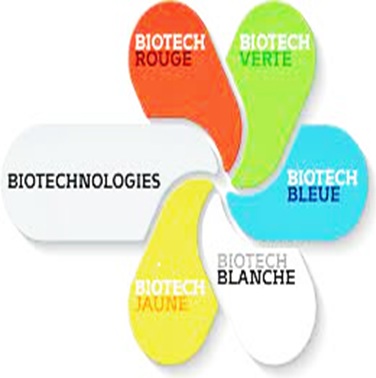 Les biotechnologies sont des sciences multidisciplinaires qui associent les potentialités d’une entité vivante ou une partie de cette entité à différentes techniques et procédés dans un but économique. Actuellement, les biotechnologies sont considérées parmi les technologies les plus émergentes, en raison des grands progrès de la biologie moléculaire ces dernières années. La figure 1 montre les domaines d’utilisation des biotechnologies modernes. Donc, les biotechnologies trouvent des applications dans des secteurs variés et sont regroupées au sein d’une classification identifiée par un système de couleur :