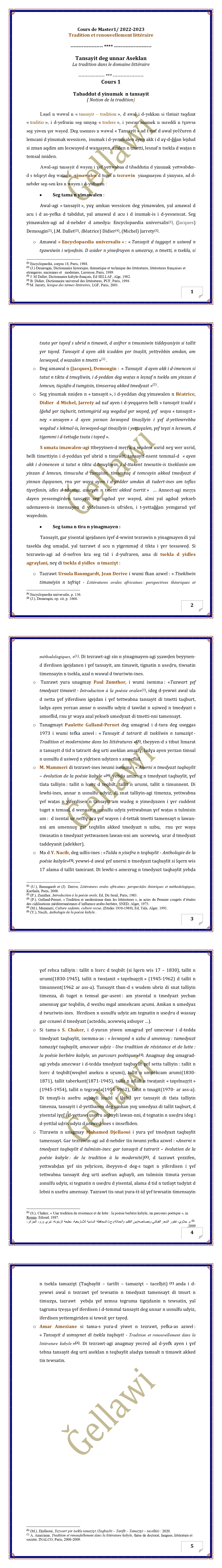 Ce TD destiné également aux mastérants en spécialité "Littérature" leur permet de procéder à l'élaboration de mini- projets de recherche en vue de réaliser une recherche documentaire en lien avec les corpus respectifs choisis (romans en Tamaziyt, nouvelles, pièces de théâtre, articles de presse écrite, émissions radiophoniques ou télévisuelles, etc.