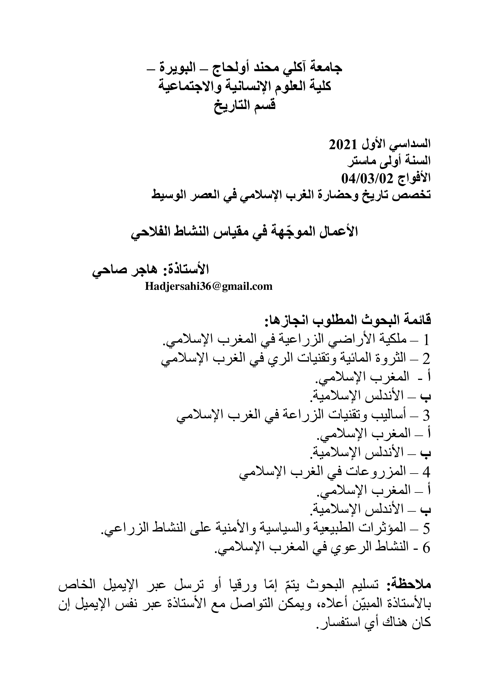 مقياس النشاط الفلاحي الأعمال الموجهة للأفواج 02-03-04