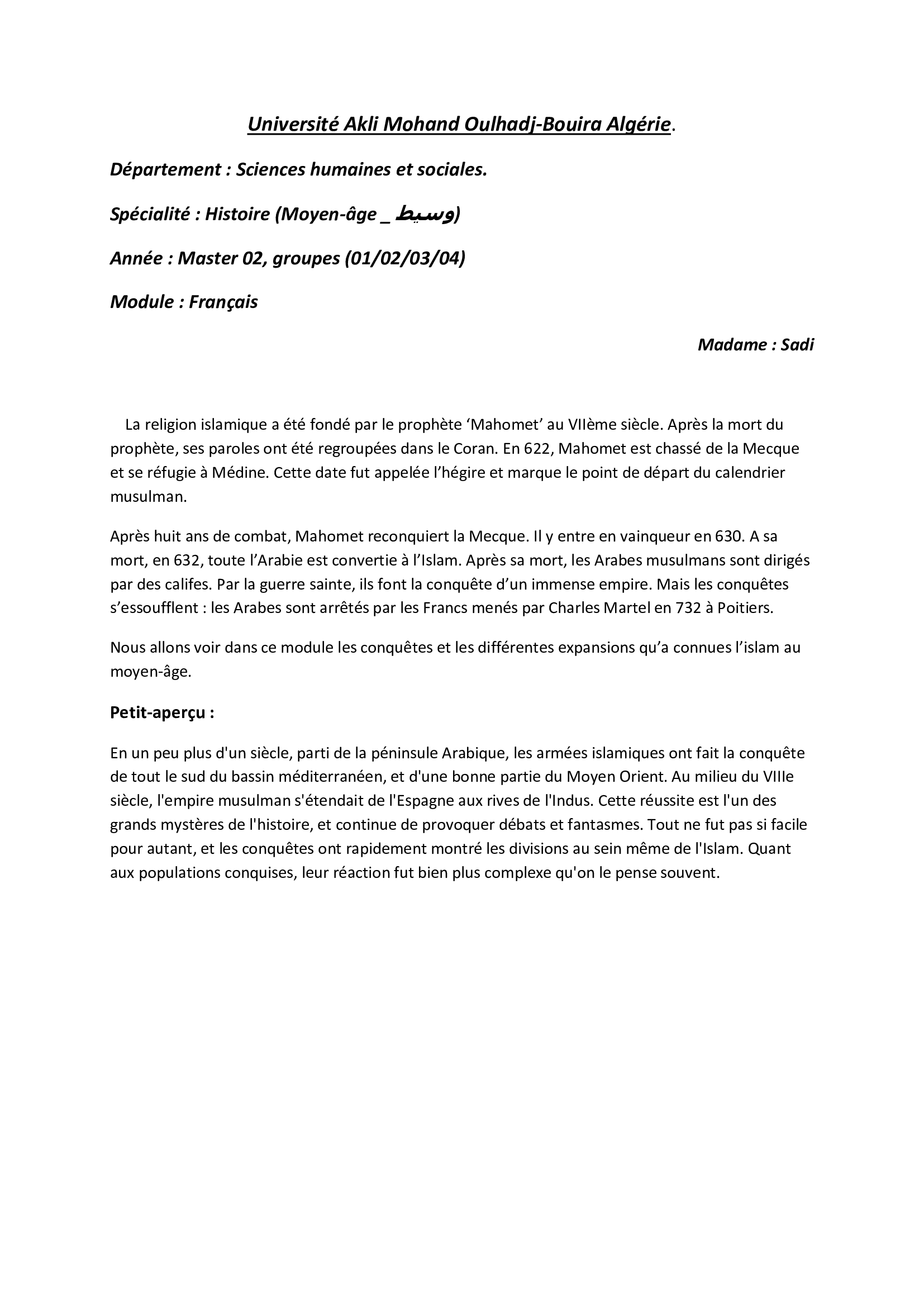 Spécialité : Histoire (Moyen-âge _ وسيط)