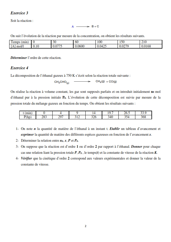Suite de la sérien N°2 Thermodynamique et Cinétique Chimique 2023
