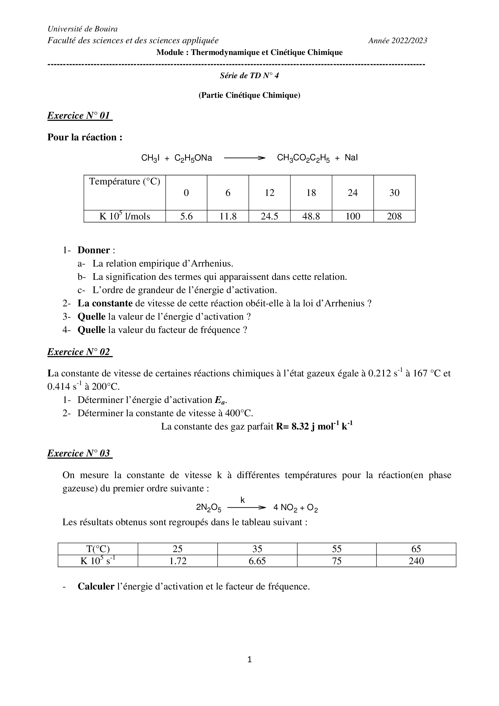 Série de TD N° en Cinétique chimique 2023